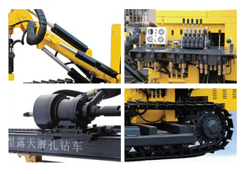 KG920B 型露天潛孔鉆車在KY125型鉆車的基礎(chǔ)上,對液壓系統(tǒng)、鉆臂部件、行走部件等進(jìn)行優(yōu)化升級,加大動(dòng)力(YC4D80)爬坡能力更強(qiáng),鉆孔角度更合理,回轉(zhuǎn)和推進(jìn)速度更快,馬達(dá)使用壽命更長,可靠性更好。